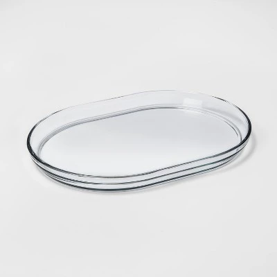 Add modern, minimalist flair to your table with this simple and stylish Rectangle Glass Serving Platter from Project 62â„¢. Crafted from clear and sturdy glass, this subtle yet stylish serving platter makes a chic statement no matter what you serve in it. Whether you’re sharing your favorite chips and dips or hot, spicy snacks, this clear rectangular glass platter adds simple style to your tableware. This serving platter comes with gently rounded edges and a smooth rounded rim for a polished finish.