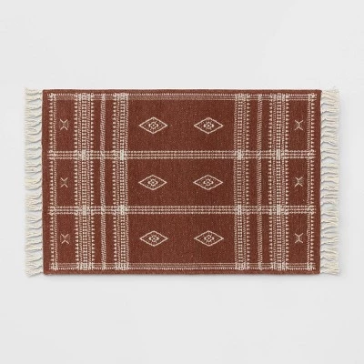 From traditional-inspired bedroom spaces to contemporary-styled living rooms, the 2’3″ x 3’9″ Southwest Plaid Accent Rug from Project 62™ blends well with a variety of decors. Showcasing a Southwestern-inspired checkered print with stitched borders and tassel accents in soft neutral hues for an eye-catching look, and a woven construction for plush comfort underfoot, this accent rug makes a wonderful addition to any room. Complete with a durable latex backing for a no-slip design and a flat-pile height that is perfectly suited for a high-traffic living room or a busy dining space, this rectangular accent rug brings style and comfort to any space.