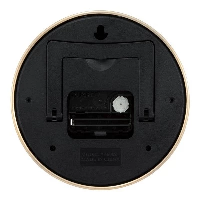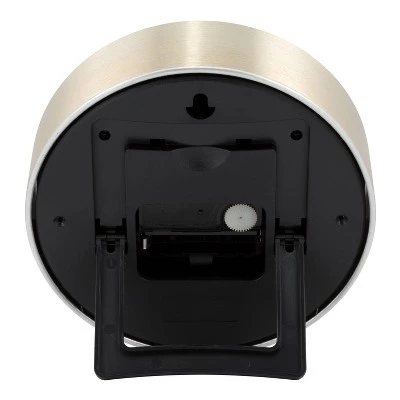 With this Round Wall Clock from Project 62â„¢, you’ll bring in the cool modern look you’re going for. This small round analog clock has a sleek, streamlined look with a metal case in a shiny brushed brass finish topped off with easy-to-read numerals and a clean dial. A great addition to any room, this clock offers a chic way to stay on schedule. Plus, it can be either be set on a table using the integrated, foldable easel or hung on a wall by its keyhole. The easel opens in 2 stages. First – pull on the easel it releases it from the case of the clock. Then give it a gentle pull again to lock it into place at which point it will stay firmly in place.