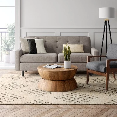 Bring a classic, understated look to any part of your abode with this Diamond Geo Shag Rug from Project 62â„¢. This geometric-print shag rug features a repeated diamond-shaped print against an ivory backdrop that lends it a contemporary look, while its neutral color palette is perfect for warming up the feel of your space. Thanks to the high pile design and woven construction, this indoor shag rug offers you incredible cushioning and softness underfoot and is ideal for high-traffic areas like the kids’ play area or the living room space.