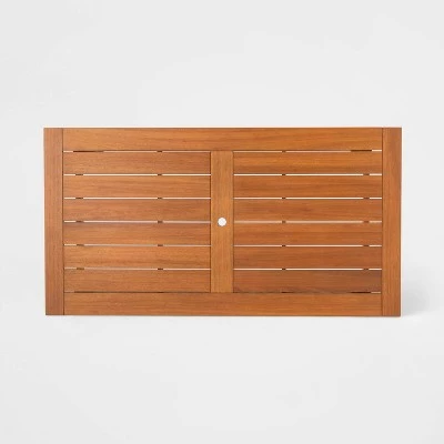 Enhance outdoor entertainment season after season with this Kaufmann Wood Rectangle Patio Dining Table from Project 62â„¢. This wooden dining table makes a practical addition to your backyard, patio, deck or any other outdoor space. It features a rectangular shape with a spacious slatted top for resting your drinks, dishes and other items. The weather-resistant finish allows for use season after season, and the natural frame color coordinates with any decor. Pair with outdoor dining chairs from the same collection to complete the cohesive look.