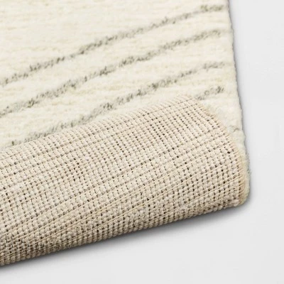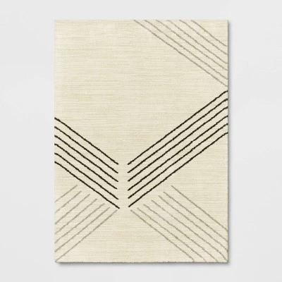 Bring a contemporary update to your living room, bedroom or dining area with this Cream Geo Line Area Rug from Project 62™. Showcasing a striking geometric pattern with woven crisscross lines in neutral hues for an eye-catching look, this rectangular area rug comes with a no-backing design for fuss-free maintenance and easy placement anywhere in your home. Complete with a medium-pile height that adds an additional layer of comfort underfoot, this cream geo rug brings comfort and style to your indoor space.