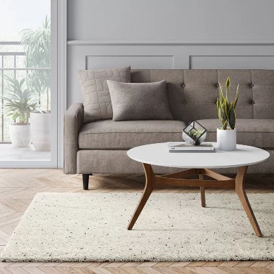 The Salt/Pepper Shag Rug from Project 62â„¢ is sure to impress with its distressed detailing and comfortable feel underfoot. This neutral rug showcases a unique light-on-dark speckled pattern for eye-catching style, and the loomed construction adds texture. Plus, the polypropylene backing helps the rug stay in place on surfaces like tile and hardwood floors.