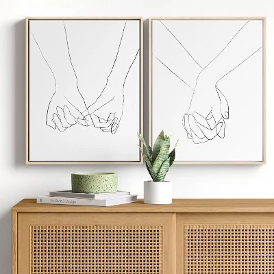 Liven up your living spaces with the (Set of 2) 16″ x 20″ Hands Framed Canvas from Project 62â„¢. These pieces of art can be hung on an empty patch of wall to decorate the space. They feature hand designs on a white background that can fit into most decor styles. This pair makes for a great housewarming gift, too.