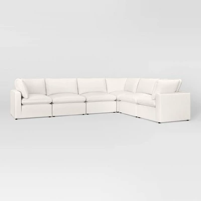 Switch up your living space decor with this 6-Piece Allandale Modular Sectional Sofa Set from Project 62™. This sectional sofa set includes three corner sectional pieces and three armless sectional pieces, allowing you to assemble a perfect spot for enjoying a refreshing drink and chatting with friends or curling up with a good book. Draped in soft upholstery, this modular sectional sofa set in a solid hue easily mixes in with a range of decor styles and color palettes in your home. Simply add a coffee table or end tables alongside the sectional sofa set to create a warm, cozy feel.